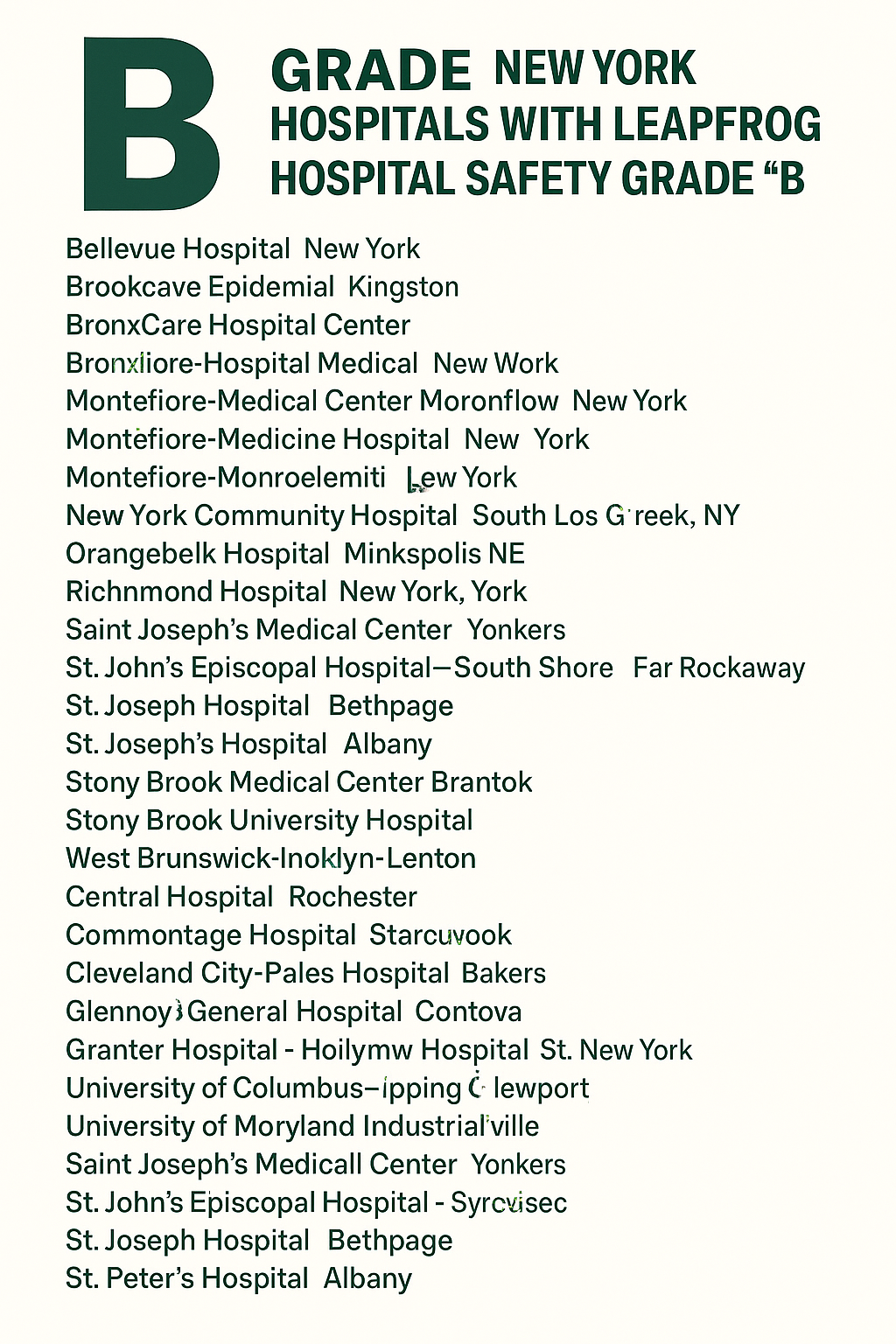 Some hospitals consistently perform well, including many major centers in Manhattan, Brooklyn, Queens, Westchester, and Long Island that received A or B grades. But a substantial number of facilities are graded C, D, or F, signaling persistent safety challenges.